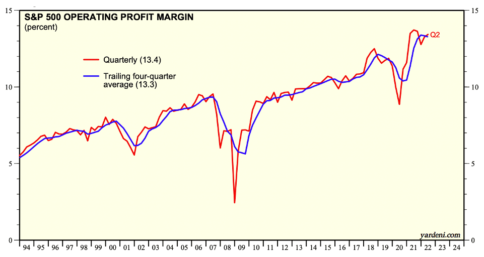 Grafen viser overskudsgraden i de 500 største amerikanske virksomheder siden 1994.